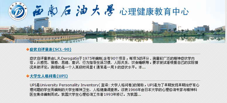或從西南石油大學主頁—從左側用戶導航點擊“學生”—進入后從我的事務點擊“心理咨詢”,也可進入該網址。界面如下: