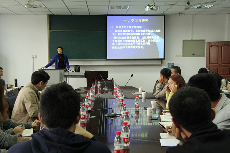 鄧教授以“志存高遠,腳踏實地——做一個優秀的研究生”為主題,作了系統全面的報告。鄧教授談到,要成為一名優秀的研究生,需從“學習與研究”、“工作與活動”、“生活與修養”三個方面做起。鄧教授著重強調了學習與研究方面,首先鄧教授介紹了研究生與大學生的區別,她指出,研究生應當具備研究能力,這包括觀察能力、分析能力,同時也應當具備比較觀察能力,研究問題,只有一種能力是不行的。鄧教授就“為什么要、怎么樣構建知識體系”這一問題進行了詳細的解答,她談到,任何的學習都是在增強人的可控能力,構建知識體系是為了穩定的解決問題。而構建這一知識體系需要目標、獲取、提煉、輸出、聚合、擴充這六個步驟。鄧教授強調,作為一名研究生,要學會查閱資料,首先要注意選擇文獻,要讀一定數量的高端刊物的文獻,還要精度與略讀結合,好文章、高水平文章一定要精度若干篇。讀文獻要“由博而約,以一貫之”,注意寫文獻綜述。
