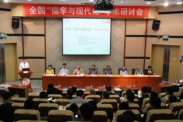 2016年9月24日,由朱子協會、四川省中國哲學史研究會等多家單位聯合主辦,《中州學刊》雜志社協辦,我院承辦的全國“儒學與現代化”學術研討會在我校成功舉辦。來自復旦大學、山東大學、四川大學、西南大學、西北大學、華中師范大學、山東社科院、湖北社科院、重慶社科院、西南交通大學、貴州師范大學、西南石油大學等研究機構和高校代表以及我院研究生共100余人參加了本次研討會。討會開幕式由我院院長張小飛教授主持。