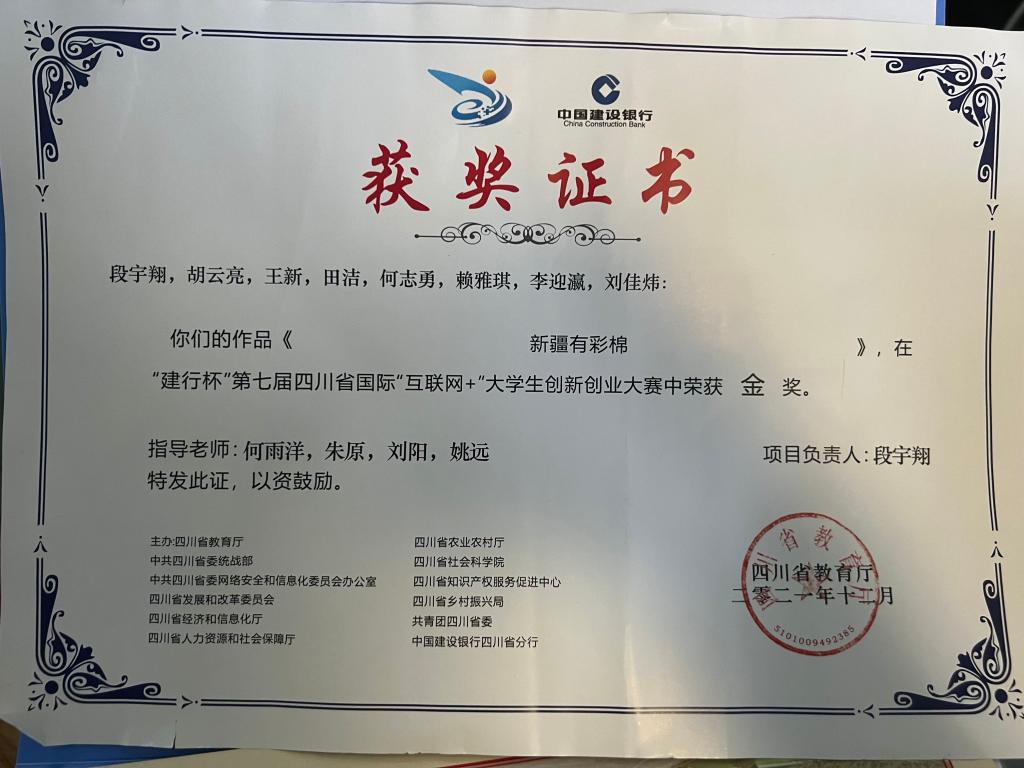 獎項(xiàng)名稱:第七屆中國“互聯(lián)網(wǎng)+”大學(xué)生創(chuàng)新創(chuàng)業(yè)大賽金獎