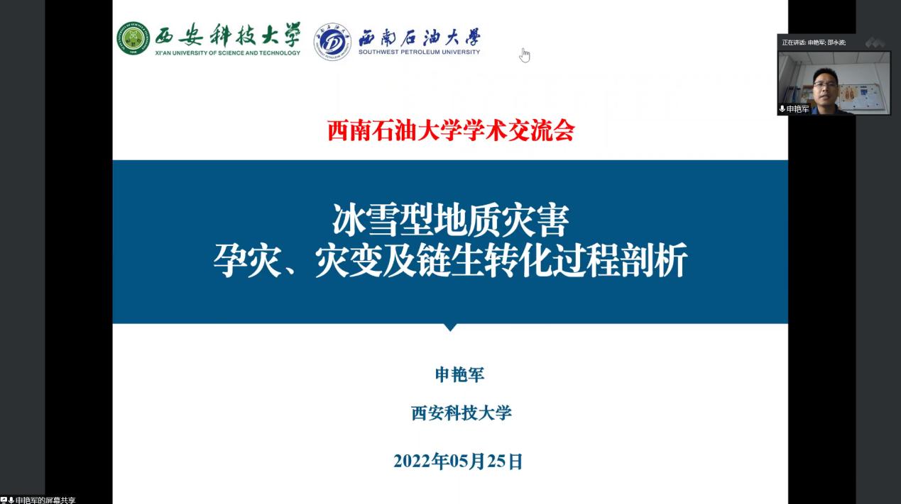 5月25日下午,我院邀請西安科技大學大學申艷軍教授為我院師生作“冰雪型地質災害孕災、災變及鏈生轉化過程剖析”線上專題學術講座。申艷軍教授是陜西省第一批“特支計劃”青年拔尖人才入選者、陜西省青年科技新星、陜西省第一屆普通高校青年杰出人才入選者。本次講座由我院院長邵永波教授主持。