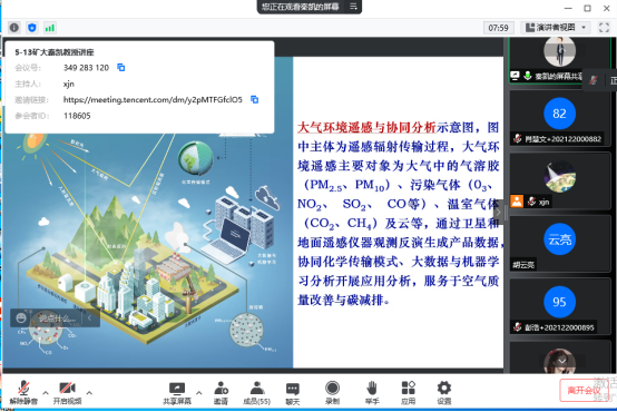 5月13日下午,我院邀請中國礦業大學教授、博士生導師秦凱為師生作“大氣環境遙感與應用進展”的線上專題學術報告。秦凱教授是中國礦業大學遙感科學與技術專業負責人、江蘇省煤基溫室氣體減排與資源化利用重點實驗室副主任。德國宇航中心遙感技術研究所、韓國延世大學訪問教授。兼任國際攝影測量與遙感學會大氣環境遙感工作組秘書、國際數字地球學會中國國家委員會數字能源專業委員會秘書長、《Remote Sensing》Board Member、《遙感學報》編委、《International Journal of Coal Science & Technology》科學編輯、《煤炭學報》青年編委、《地理與地理信息科學》編委。主持國家自然科學基金面上和青年項目、山西省科技重大專項計劃揭榜掛帥項目、教育部產學合作協同育人項目等20余項。發表論文60余篇,其中第一或通訊作者在IEEE-TGRS、Environmental Research Letters、Atmospheric Environment、Atmospheric Research等期刊發表論文26篇,出版專著1部,授權發明專利2項,獲測繪科學與技術獎二等獎1項。本次學術報告由本院副院長熊俊楠教授主持。