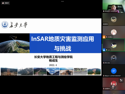 4月21日下午,我院邀請長安大學教授、博士生導師楊成生為師生作“InSAR地質災害應用與挑戰”線上專題學術講座。楊成生教授是長安大學青年“長安學者”,測繪科學系副主任,主要從事InSAR自動化智能化數據處理與應用領域的研究,主持國家自然科學基金、國家重點研發計劃子課題等項目20余項,發表論文100余篇,獲省部級科技進步一等獎1項,“陜西省測繪青年科技獎”1項,教學成果獎4項。本次講座由學院副院長熊俊楠教授主持,300余名測繪、地理信息及相關領域師生參加了講座會。