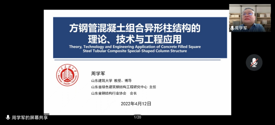 4月12日上午,我院邀請山東建筑大學教授、博士生導師周學軍為我院師生作“方鋼管組合異形柱結構的理論、技術與工程應用”的線上專題學術講座。周學軍教授長期致力于鋼結構基本理論與空間鋼結構、組合結構和裝配式結構的研究工作,在建筑結構學報、土木工程學報等國內重要學術期刊上發表學術論文160余篇,出版著作11部。現擔任山東省綠色建筑鋼結構工程研究中心主任、山東省鋼結構行業協會會長等職務。本次線上學術講座由學院院長邵永波教授主持。