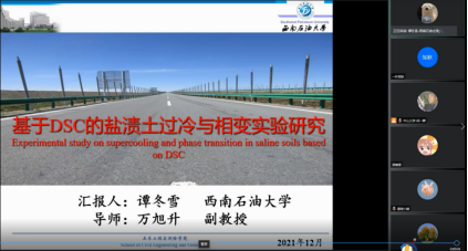 譚冬雪做“基于 DSC 的鹽漬土過冷與相變實驗研究”報告