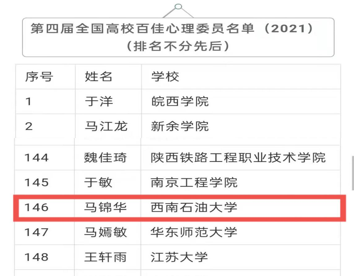 2021年11月17-19日,由中國心理學(xué)會心理危機(jī)干預(yù)工作委員會、全國高校心理委員研究協(xié)作組舉辦,桂林理工大學(xué)、高校心理委員工作平臺、北京中科心理援助中心承辦的第四屆“全國高校百佳心理委員”評選活動圓滿結(jié)束。全國200多所高校的學(xué)生心理委員代表參加了此次評選。我校推選的土測院建筑環(huán)境與能源應(yīng)用工程專業(yè)2019級馬錦華同學(xué)榮獲第四屆“全國高校百佳心理委員”榮譽(yù)稱號。