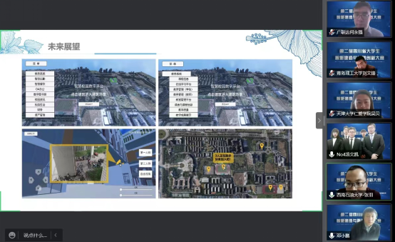 本次比賽歷時6個月,設(shè)一等獎7名、二等獎13名、三等獎19名。因受疫情影響,決賽全程采用線上方式進(jìn)行,使用騰訊會議平臺進(jìn)行作品展示答辯和評審,同時通過嗶哩嗶哩網(wǎng)站高清直播。決賽邀請了四川省土木建筑學(xué)會劉超秘書長、福州大學(xué)胡昌斌教授、華西工程科技(深圳)股份有限公司劉東董事、魯班軟件股份有限公司張洪軍副總裁、廣聯(lián)達(dá)科技股份有限公司數(shù)字高校部朱溢镕經(jīng)理組成大賽仲裁委員會。各分會場邀請了重慶大學(xué)毛超教授、東南大學(xué)鄧小鵬教授、哈爾濱工業(yè)大學(xué)滿慶鵬教授、湖南大學(xué)陳大川教授等20位省外高校的知名學(xué)者和行業(yè)專家擔(dān)任決賽階段的評委。