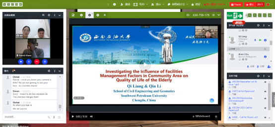 在會場中,我院梁琦博士與碩士研究生李琴根據課題組在設施管理領域的最新研究成果,做了全英文學術分享匯報,所提出的通過改善社區環境及設施因素提升老人生活質量的觀點得到了主題會議室主持人Patrick Manu的高度認可。