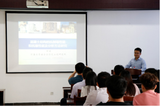 講座中,喻君教授主要從兩方面為大家講授爆炸荷載對結構造成的影響。第一部分是結構抗連續倒塌研究,喻教授首先介紹了結構抗連續倒塌的背景,接著從結構抗倒塌的研究方法、RC梁柱子結構的抗倒塌性能、RC框架、填充墻框架、梁板體系的抗倒塌研究、整體結構抗倒塌的加固方法六大板塊講授相關知識。第二部分是結構抗爆,喻教授同樣從研究背景引入相關研究,然后講述了結構柱接觸抗爆研究現狀,重點說明了進一步的研究工作:完善PC柱的抗爆研究工作、組合結構構件的抗爆研究、考慮爆炸引起的RC結構抗倒塌整體分析。