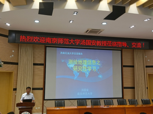 6月19號下午,我院邀請南京師范大學二級教授、博士生導師湯國安為我院以及地球科學與技術學院師生作了“測繪地理信息之研究性學習”專題學術講座。湯國安教授為奧地利薩爾茨堡大學博士,教育部國家級教學名師,享受國務院政府特殊津貼。現任教育部地理科學類專業教學指導委員會副主任國務院學科評議組成員(地理),中國地理信息產業協會副秘書長及教育工作委員會主任、中國地理學會地理教育專業委員會副主任等學術職務。本次講座由我院熊俊楠教授主持。