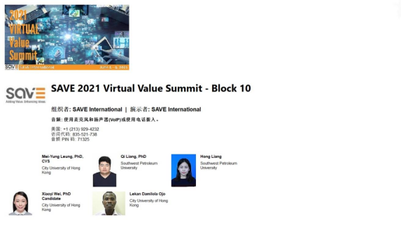 我院師生通過參加本次SAVE虛擬價值峰會,了解到全球價值工程領域的最新成果,拓寬了國際科研視野,與國際同行專家、學者進行了積極交流,展現了我院在相關領域所做的科研以及所取得的成果。
