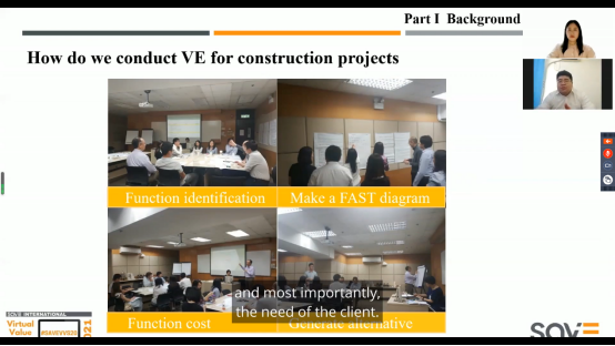 通過嚴格的論文投稿、同行評議,我院梁琦博士和其指導的碩士研究生梁紅受邀就其論文在“亞洲3”的分會場聯合做了題為“Apply Systematic Value Engineering Methodology to Assess the Value of Building Construction Project”(中文譯名:應用系統價值工程方法論評估建筑工程項目的價值)的全英文學術匯報,介紹了課題組在價值工程領域的最新研究成果,所提出的通過功能分析實現建筑價值對比的方法得到了SAVE董事會David Eisenberg的高度認可。