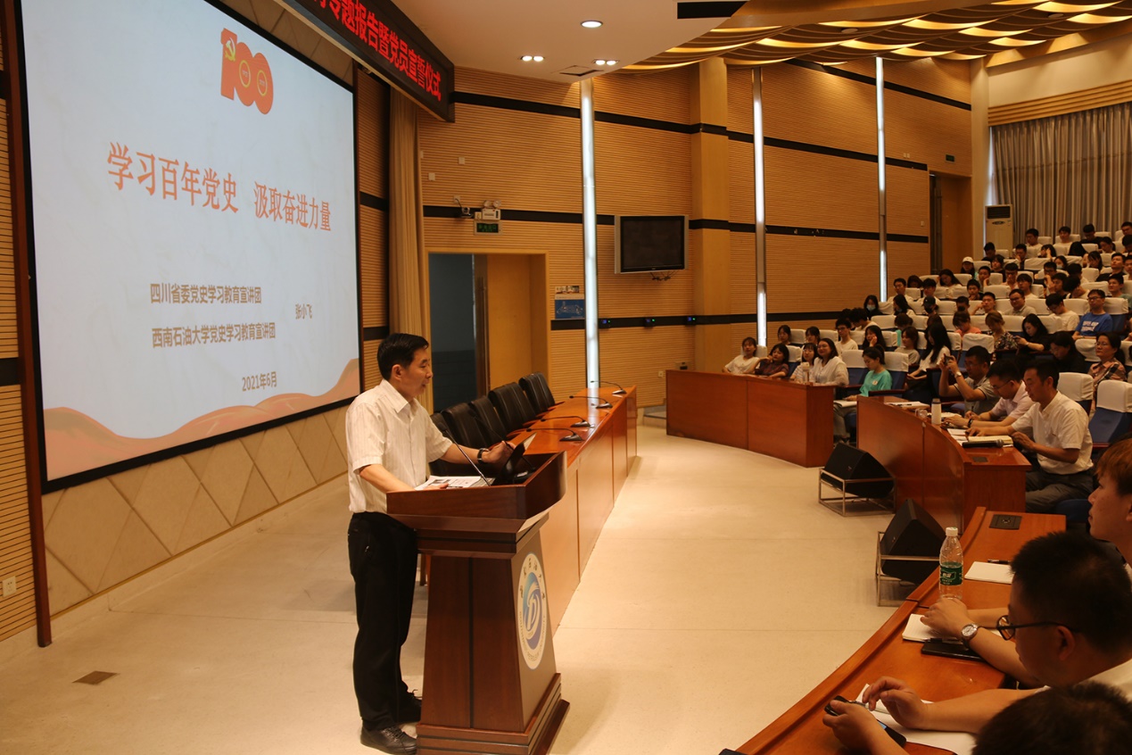 6月8日,學院特邀馬克思主義學院院長、學校黨史教育宣講團張小飛教授在思學樓A114學術報告廳做黨史學習教育報告會,全院教職工黨員和學生黨員參加報告會。
