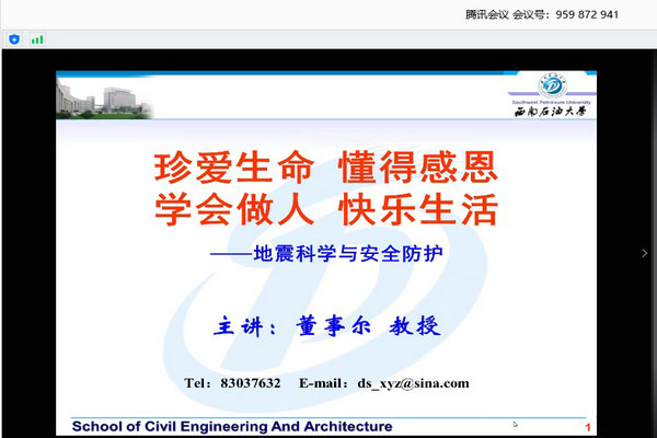 2020年5月12日是我國(guó)第12全國(guó)防災(zāi)減災(zāi)日,為進(jìn)一步提高學(xué)生防震減災(zāi)意識(shí)和應(yīng)急避險(xiǎn)能力,提升工程倫理意識(shí),增強(qiáng)專(zhuān)業(yè)知識(shí)與工程實(shí)際的結(jié)合,土木工程與測(cè)繪學(xué)院工程倫理教育特色活動(dòng)——防災(zāi)減災(zāi)教育線上講座于5月14日下午3點(diǎn)利用騰訊會(huì)議平臺(tái)開(kāi)展,董事?tīng)柦淌谥髦v,360余名學(xué)生聆聽(tīng)了講座。