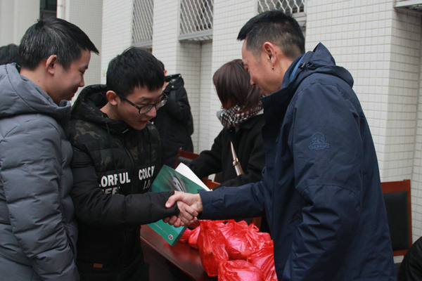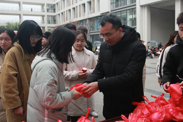 慰問尾聲,曾明友、熊俊楠兩位老師為考研學子發放精心準備的禮物和水果。一字一句的祝福,無不體現著學院對考研學子細致的關懷與殷切的期盼,精心準備的禮物讓備戰考研的學子感受到來自學院老師的祝福和鼓勵。此次慰問,不僅鼓舞了考研學生的信心,舒緩了學子們的心理壓力,還進一步提升大家的考研信心與斗志,相信每一位考研學子都能全力以赴,取得優異成績,實現自身理想。(學生工作辦公室供稿,周橋遠/文,戴西茜/圖)