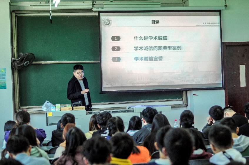 11月14日下午,土木工程與測繪學院“學術駐我心,誠信實踐行”— 學術誠信倡議活動在明志樓A311舉行,土木工程與測繪學院副院長梁琦、研究生輔導員陳偉以及土木工程與測繪學院2018級、2019級碩士研究生參加了本次活動。