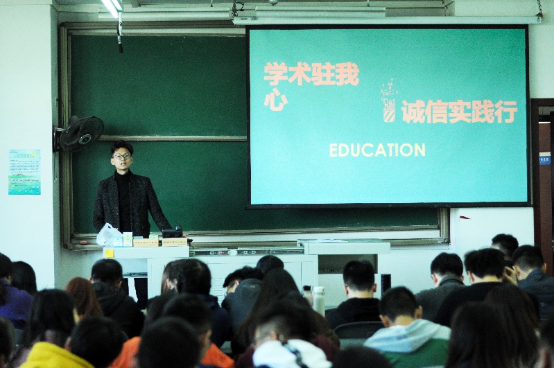 活動伊始,學生代表江東向全體同學宣講了學術誠信的概念和學術不端行為的危害,用一個個深刻而又令人警醒的反面案例揭示了學術不端行為的惡劣影響,其對學術誠信的理解展現了新時代“土測人”在學術誠信方面的擔當與責任。