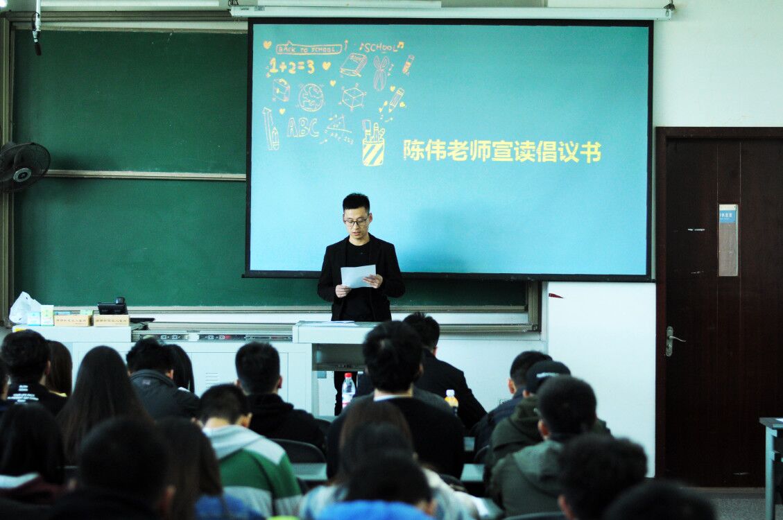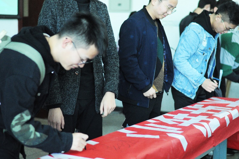 隨后,研究生輔導員陳偉老師進行了學術誠信倡議書的宣讀,陳老師呼吁同學們要堅決抵制學術不端行為,堅守學術道德,勇擔學術誠信的責任,以自身在學術方面的嚴謹作風樹立良好典范。陳偉老師的倡議引發同學們的熱烈反響,隨后,同學們簽署了學術誠信承諾書和宣傳橫幅,并表示要從自身做起,抵制學術腐敗。