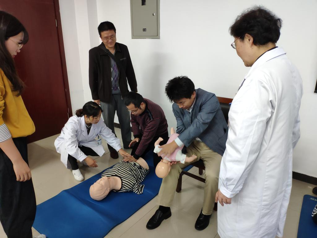 校醫院王小慧副院長一行攜帶豐富的救護用具及模型,在活動現場演示。校醫院負責醫生就生活中常見的異物堵塞呼吸道問題的種類,海姆立克急救法的步驟,海姆立克急救法針對成人、孕婦、兒童、嬰兒等不同人群的關鍵要領進行了培訓,校醫院專人進行示范,便于現場職工更好的理解、學習海姆立克急救法。隨后在場的職工和學生進行了實際操作,尤其是初為父母或即將帶小孩的青年教師熱情高漲,積極參與培訓操作,反復練習以便于掌握好該急救法的動作和要領,在遇到呼吸道異物堵塞突發事件時能搶得寶貴的救護時間。