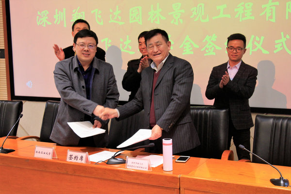 3月11日下午,西南石油大學2018年“翔飛達獎學金”頒獎典禮暨簽約儀式于思學樓A114成功舉行。深圳市翔飛達園林景觀工程有限公司董事長鄭世明,土建院黨委書記曾明友,院長邵永波,深圳市翔飛達園林景觀工程有限公司行政部主管李浩磊出席頒獎典禮暨簽約儀式,儀式由土建院黨委副書記姚遠主持。