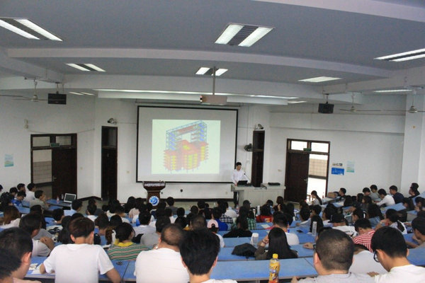BIM是現(xiàn)在中國工程領域極具應用價值和發(fā)展?jié)摿Φ募夹g應用平臺,但和國外的一些發(fā)達國家相比,由于工程環(huán)境、管理觀念、管理體制和管理能力及其他一些因素,BIM在一些施工合同體制的施工過程中并沒有得到廣泛的應用。對此,他首先分析了BIM建筑信息模型在施工領域中的應用價值和技術方法,提出了它的優(yōu)勢方面,對這些方面予以肯定。其次,他分析了建筑信息模型在中國發(fā)展所遇到的阻礙,并針對這些方面進行了細致闡述。在講座結尾,他針對課堂中大家所提出的問題,結合學科融合在工程實踐中的案例,為大家指明了BIM的意義以及未來的發(fā)展方向。