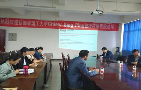 2018年4月9日上午8:30,新加坡理工大學(xué)Chiew Sing Ping教授在明志樓A413做了題為“Design and Construction of Structural Steel Projects in Singapore(新加坡鋼結(jié)構(gòu)工程的設(shè)計與施工)”的學(xué)術(shù)講座。出席本次講座的有土木工程與建筑學(xué)院院長邵永波教授和外籍教師桑敏副教授。