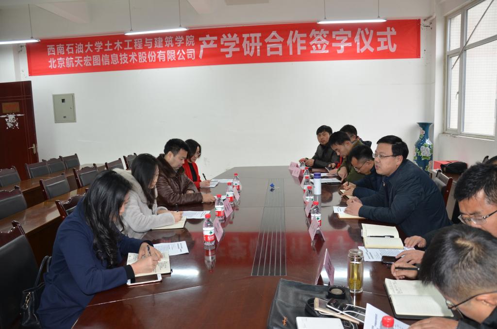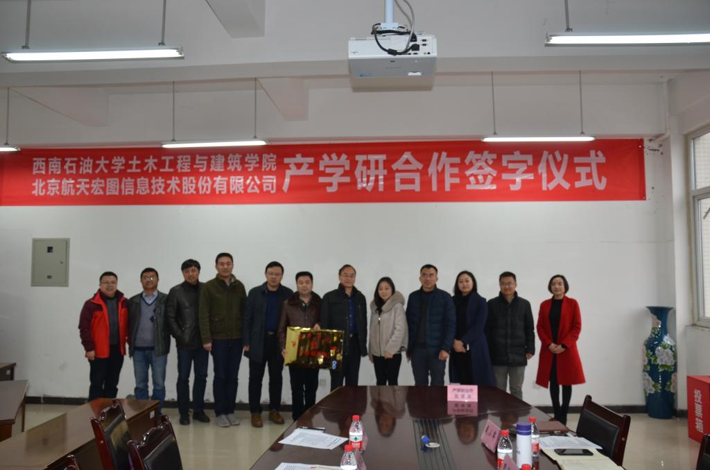 2018年1月23日,土木工程與建筑學院與北京航天宏圖信息技術(shù)股份有限公司產(chǎn)學研合作簽字及授牌儀式在明志樓A413舉行。北京航天宏圖信息技術(shù)股份有限公司四川分公司總經(jīng)理黃藉玉、北京航天宏圖信息技術(shù)股份有限公司四川分公司副總經(jīng)理歐國敏、北京航天宏圖信息技術(shù)股份有限公司四川分公司技術(shù)總監(jiān)喬瑜、北京航天宏圖信息技術(shù)股份有限公司四川分公司銷售經(jīng)理黃麗、學院院長邵永波、教授委員會主任王澤根、黨委副書記姚遠、副院長熊俊楠,以及學院相關(guān)科室負責人、測繪工程教研室教師代表共同參加,黨委副書記姚遠主持了本次產(chǎn)學研合作簽字及授牌儀式。