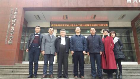在武漢大學,受到了土木建筑工程學院黨委雷世富書記的熱情歡迎,通過座談的方式,鄒維列院長從歷史沿革、機構設置、專業設置、學科建設、科學研究等方面介紹了武漢大學土木建筑工程學院的基本情況及本科教學情況,副院長李品榮介紹了武漢大學土木建筑工程學院實驗室的建設管理情況,副院長胡衡介紹了土木工程和力學兩個一級學科新的科研增長點情況。隨后的交流環節中,雙方就師資隊伍建設、人才培養、實驗室建設及管理等方面的內容展開了深入探討。