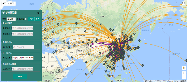 (通過“旅行莢”全球航線板塊查詢北京出發所有航線)