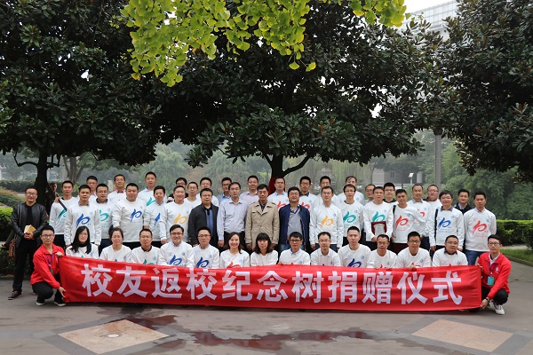 在捐贈儀式上,劉恒代表學校接受了捐贈,曾明友向校友代表頒發了捐贈證書。曾明友、劉恒還和校友代表一起為紀念樹揭牌,并合影留念。
