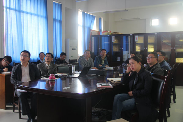 學院黨政領導、各科室負責人、黨支部書記、師生代表集中收看現場