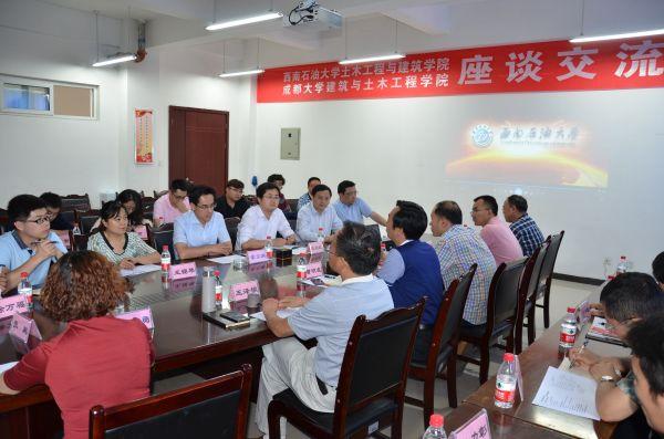 首先,曾明友書記代表學院黨政班子和全體老師熱烈歡迎成都大學建工院領導的來訪,并介紹了學校建校近60年來的發展歷程、二次創業和全面改革等情況,也懇請成都大學的領導對我們工作提出寶貴意見和建議。熊俊楠副院長介紹了我院的基本情況,以及在師資建設、人才培養、教育教學、學科建設、科學研究和社會服務等取得的成績以及還需努力的方向。隨后成都大學建工院李文淵院長介紹了學校及建工院概況,以及此行的目的,他希望西南石大土建院能把好的教學和管理經驗與大家一起分享,并熱情的邀請我院領導和有關人員回訪成都大學。會議最后階段為對口交流時間,與會的雙方相關工作負責人就學院管理、教學工作、科研工作、實驗室建設、學生工作和日常管理等方面進行對口學習交流。