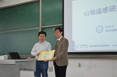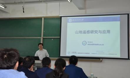 敦聘儀式結束后,李愛農研究員給土建院師生作了題為《山地遙感研究與應用進展》學術報告。他指出,中國山地面積約占陸地國土面積的65%,遙感為山地資源、環境、生態及自然災害調查和動態監測等提供了一種重要的空間技術手段,山地遙感是研究在山地這一特定環境中的遙感基本原理、方法及其應用的科學技術,是遙感科學的重要組成部分。接著,李愛農研究員從山地遙感研究現狀、面臨的理論和技術問題、進一步研究方向等進行了報告,包括遙感影像預處理方法、遙感影像地形輻射較正、土地利用/覆被遙感監測、山地植被生物物理參數遙感反演、地表能量收支參量遙感估算、多元數據同化反演、遙感產品地面驗證等方面。報告結束后,各位同學就相關問題與李愛農研究員進行了交流,李愛農研究員鼓勵老師和同學們扎根理論,大膽聯想,積極投身遙感科學研究。