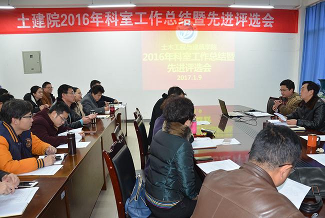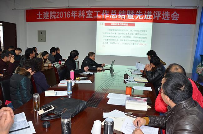 為做好本次總結評優工作,學院出臺了《土木工程與建筑學院關于評選2016年度先進集體及先進個人的通知》,全院各部門對本單位2016年度在科室黨建、人才培養、專業建設、學科建設、招生就業和日常管理等工作進行了認真總結,并在此基礎上推選出了先進工作者、優秀青年教師、促進成才獎候選人。會上, 8個部門及黨支部代表逐一發言,通過幻燈片的形式報告了各自在教學、科研、管理等各方面工作和取得的成績。在他們的總結中表達了一個共同點:過去的一年,學院各單位和廣大教職工在十分嚴峻的形勢和巨大的壓力面前沒有垮掉,全院“講團結、聚人心、鼓干勁、求進步”,學院改革得到深化,各方面工作取得了明顯進步,獲得國家級學科競賽獎較上年增加13項、發表ESI文章數增加7票、出版專著增加7部、獲省部級科研成果獎增加2項,承擔國家自然科學基金合作項目、承擔C級科研項目、授權發明專利等均取得得零的突破。學院呈現出團結和諧、穩中有進的新局面。