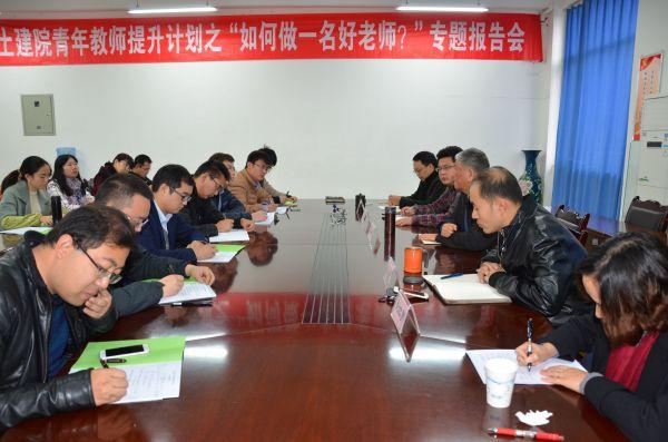 11月21日下午2:30,土建院在學院A413會議室舉行了青年教師提升計劃之“如何做一名好老師”專題報告會。學院2015年以來新進的16位新老師參加了報告會,李士倫教授、劉紅勇教授和岑康副教授先后為這些青年教師作了報告。報告會由學院黨委副書記姚遠主持,學院副院長胡啟軍、學院各辦公室負責人參加了報告會。