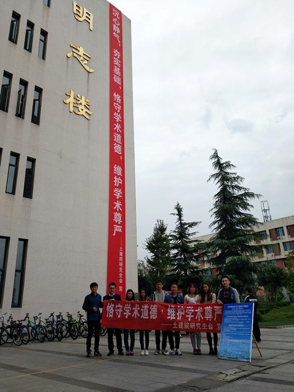 古語有云:“棟莫如德”。意為對于人才來說,最重要的莫過于德行了。崇尚道德,是我們中華民族傳統文化?,F代所說:“國無德不興,人無德不立”,同樣也強調了道德的重要性。為了向同學們宣傳科學精神和學術道德,土建院研究生會于10月28日在明志樓A區舉辦了以“恪守學術道德從自身做起”的橫幅簽名活動。