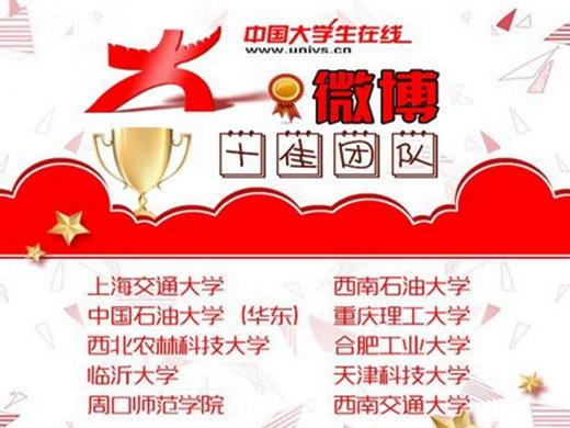 近日,教育部中國大學在線2015-2016年度評選結果出爐,由學工部與我院共建的“石大蜂鳴”網絡文化工作室暨西南石油大學中國大學生在線校園網絡通訊站榮獲教育部中國大學生在線“優秀校網通站”稱號,工作室團隊獲“微博十佳團隊”稱號。