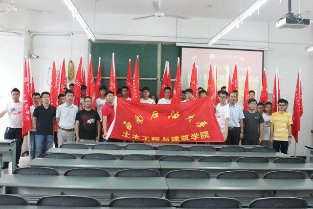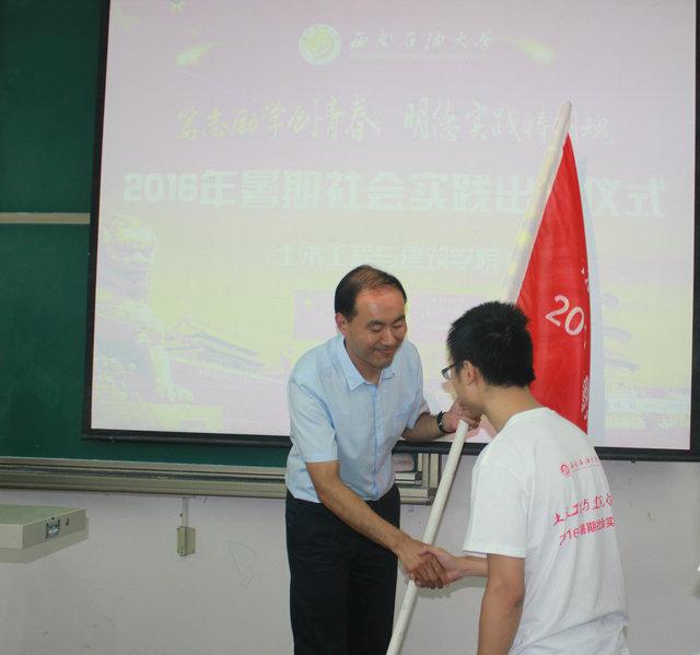 出征儀式的最后,姚遠老師和周永華老師共同為所有實踐隊授旗,標志著土木工程與建筑學院2016年大學生暑期社會實踐正式開始。