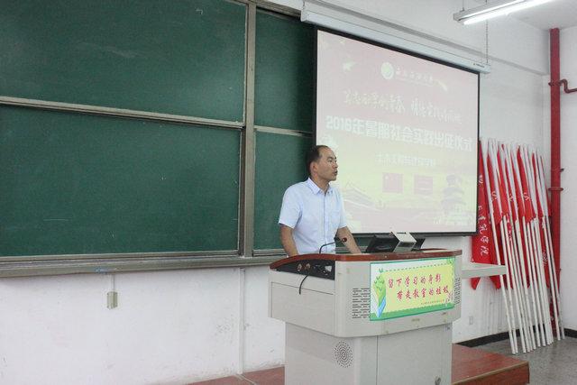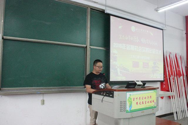 本次社會實踐指導教師代表輔導員陳鵬磊老師在發言中與同學們分享了他在學生時代的實踐經歷,他說道:“你們是今天的主角,真正的精彩需要你們去書寫,社會實踐的過程需要你們自己用心去體會。”實踐隊員代表鄧偉彬表達了所有參加社會實踐的同學積極做好實踐工作的決心:“大學生暑期社會實踐是為響應國家培養應用型人才的號召,實現學有所用、回饋社會、服務人民的最終目標。社會是一個廣闊的大舞臺,而社會實踐則為我們搭建了橋梁,我們將竭盡所能,圓滿完成此次實踐任務。”