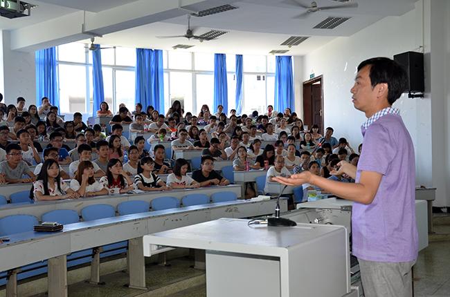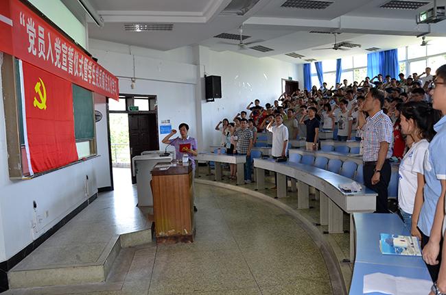 黨課開始之前,曾明友帶領全體與會黨員向黨旗莊嚴宣誓,重溫入黨誓詞。接著以“守紀律、講規矩,做合格黨員”為主題為學生黨員上黨課,詳細闡述了開展“兩學一做”學習教育的必要性和重要意義、《準則》和《條例》的精神實質以及如何踐行“兩學一做”,做好新時期合格黨員,談了自己的學習體會。其間,曾明友圍繞大學生如何做一名合格黨員,用大量生動的事例,從教師和學生兩種角度,進行了深入淺出的講解和闡述。向學生黨員們提出了克己奉公、崇廉拒腐、尚儉戒奢、甘于奉獻四個要求。