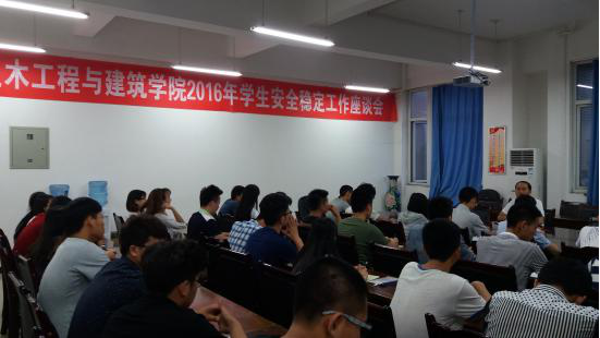 5月30日,土木工程與建筑學院召開學生安全穩定工作座談會,會議由學院黨委副書記姚遠支持,學院輔導員、學生會干部、各班班長、團支書等50余人參加會議,會議對我院近期學生安全穩定工作進行安排部署。