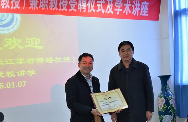 1月7日下午,土木工程與建筑學院舉行敦聘西南交通大學朱慶教授為西南石油大學兼職教授儀式,校黨委副書記張文衛代表學校向朱慶教授頒發了聘書。土建院黨委書記曾明友、院教授委員會主任王澤根、副院長胡啟軍、熊俊楠及相關教師、研究生和本科生參加儀式。儀式由胡啟軍主持。
