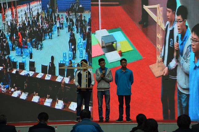 大賽分為巖土組和建工組兩大組別,賽題分別為懸臂支擋結構模型制作與測試和塔吊模型制作與測試。本次比賽無論是比賽方式,還是評比標準都是按照國家級標準進行,考驗學生的創新思維和動手能力。參賽隊伍先后經歷了模型制作、答辯、加載等環節。我院土木工程專業學生分別參加了巖土組和建工組的比賽,經過近2天的激烈角逐,我院建工組同學所做塔吊模型表現突出,榮獲二等獎。