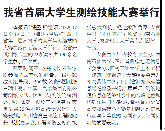 川臺、《教育導報》等報道我院承辦四川省首屆測繪技能大賽
