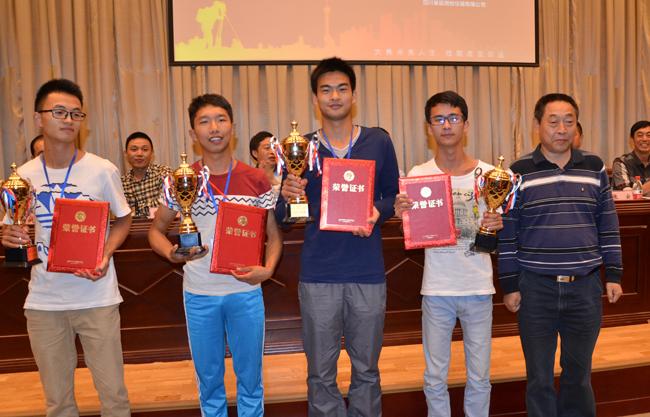 韓傳軍宣讀了單項比賽獲獎隊名單,劉增林宣讀了團體獎獲獎隊名單。西南交大希望學院等4個隊獲得一級導線測量一等獎,西南石油大學獲得數字測圖一等獎;成都理工大學、西南石油大學獲得水準測量一等獎。大賽還各評出團體和單項二等獎8名、三等獎9名,獲得一等獎的代表隊指導老師獲評優秀指導教師。參加閉幕式的領導、專家、企業領導分別為獲獎單位和個人頒獎。