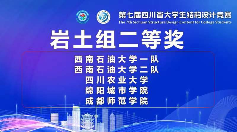 9月30日下午,四川省第七屆大學生結構設計競賽在西南石油大學落幕,我校與西南交通大學、成都理工大學工程技術學院獲得代表四川省參加即將進行的第十五屆全國大學生結構設計競賽資格。西南交通大學等6所高校獲優秀組織獎,蘭州理工大學獲特別邀請獎。
