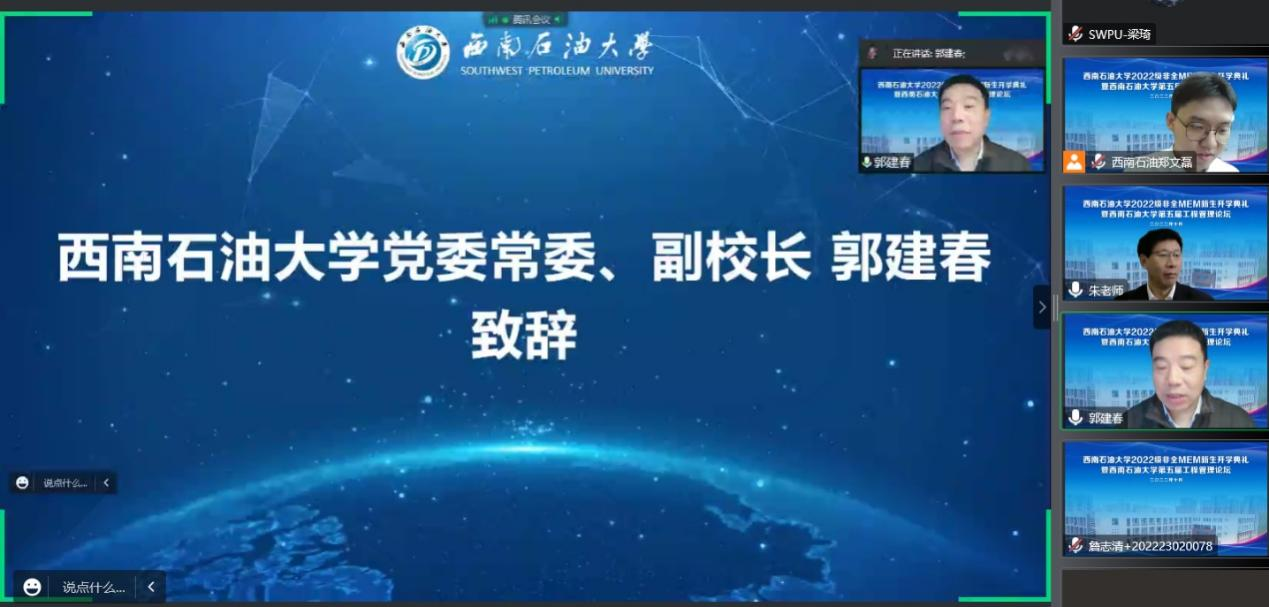 10月13日上午,土木工程與測(cè)繪學(xué)院在線上舉行了2022級(jí)非全工程管理碩士(MEM)新生開(kāi)學(xué)典禮暨西南石油大學(xué)第五屆工程管理論壇。西南石油大學(xué)黨委常委、副校長(zhǎng)郭建春出席典禮并致辭,開(kāi)學(xué)典禮由學(xué)院黨委書(shū)記朱松柏主持,學(xué)院黨委行政班子、部分教師代表等出席典禮。