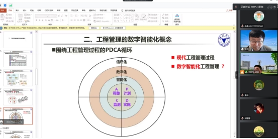 講座中,張宏教授圍繞工程管理的數字化智能化發展,并結合自己的研究工作對工程管理的數字化智能化驅動進行了系統的分析和歸納,全面的展現了現代數字技術的發展現狀,向我們立體闡明了工程管理的數字智能化概念及現代數字技術如何切入工程全壽命周期的PDCA管理工作、并分享了施工現場人體功效學干擾識別與評估和裝配式建筑施工構件吊裝延誤監測等例子。