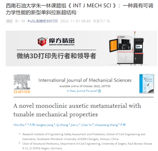 該研究成果引起了學(xué)界的廣泛關(guān)注,力學(xué)人公眾號(hào)及PuSL高精密3D打印公眾號(hào)均對(duì)該文進(jìn)行了報(bào)道。