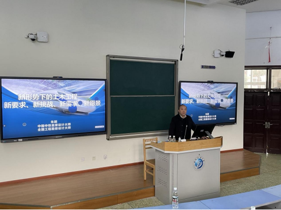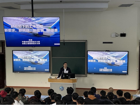 我院土木工程專業推行《土木工程概論與研討》課程教學改革,2022年11月5日上午在思學樓B110,邀請中國中鐵首席設計大師、全國勘察設計大師、教授級高工朱穎,為2022級本科新生做了題為“新形勢下的土木工程——新要求、新挑戰、新需求、新愿景”的報告。講座由學院院長邵永波教授主持,學院副院長胡啟軍教授,道橋和建筑教研室主任以及土木工程學院2022級全體師生共300余人,通過線上線下聆聽了講座。